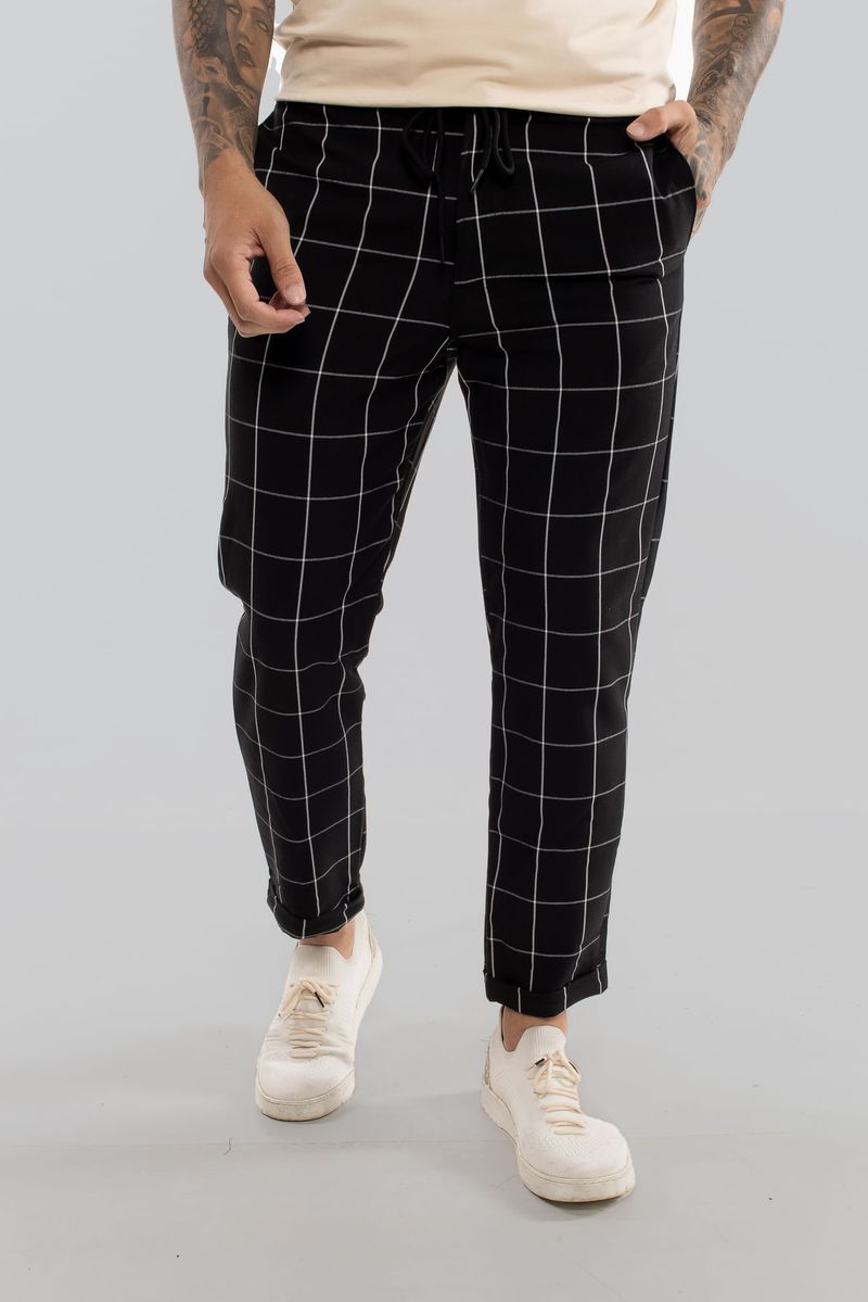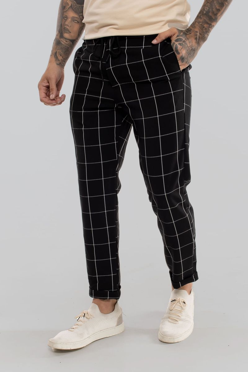 Calça Alfaiataria Barra Italiana Xadrez PRETO E BRANCO M