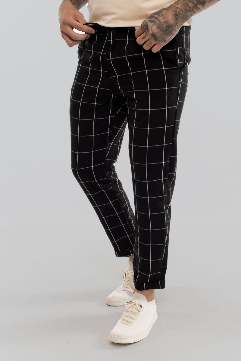 Calça Alfaiataria Barra Italiana Xadrez PRETO E BRANCO P
