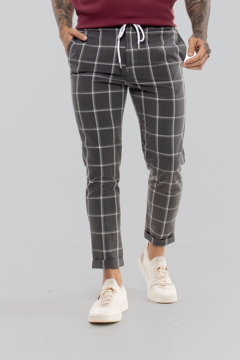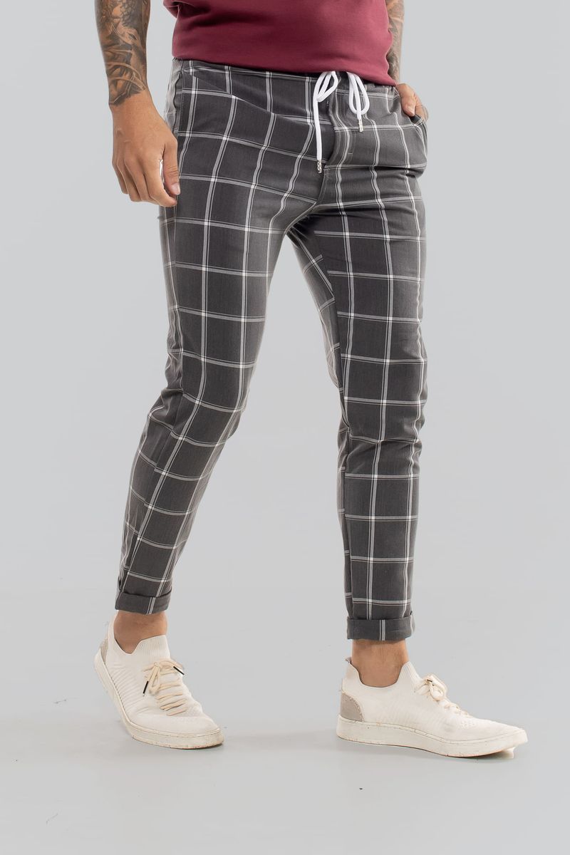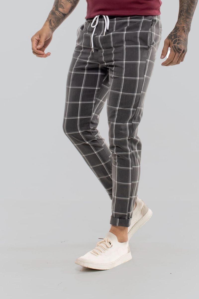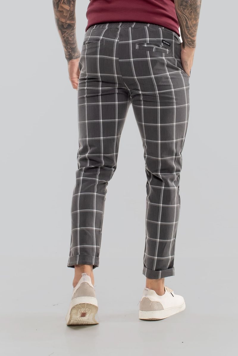 Calça Alfaiataria Barra Italiana Xadrez CHUMBO E BRANCO G