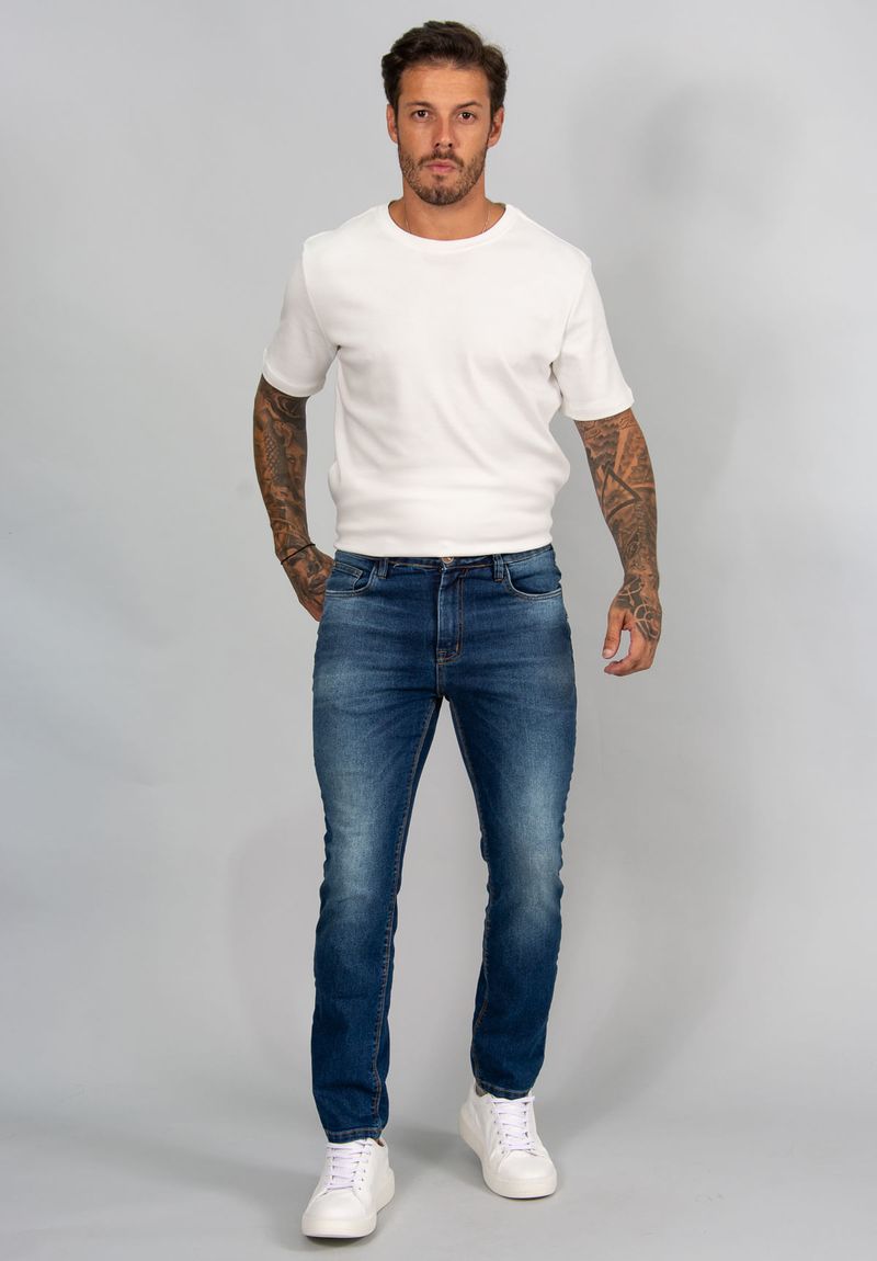 Calça Jeans Slim Medium é uma peça que combina o clássico do Jeans com o corte moderno e ajustado da modelagem skinny. Ideal para homens que buscam um visual elegante e atualizado. projetada para abraçar as pernas de forma confortável, proporcionando um visual estilizado e contemporâneo. O corte skinny oferece um ajuste preciso que destaca a silhueta masculina.