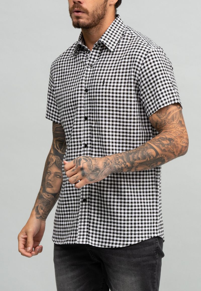 Camisa Linho Mini Xadrez M/C combina o charme clássico do xadrez com um toque moderno. Seu padrão xadrez adiciona uma dose de personalidade ao seu visual, enquanto o corte elegante e os detalhes refinados garantem um estilo sofisticado.