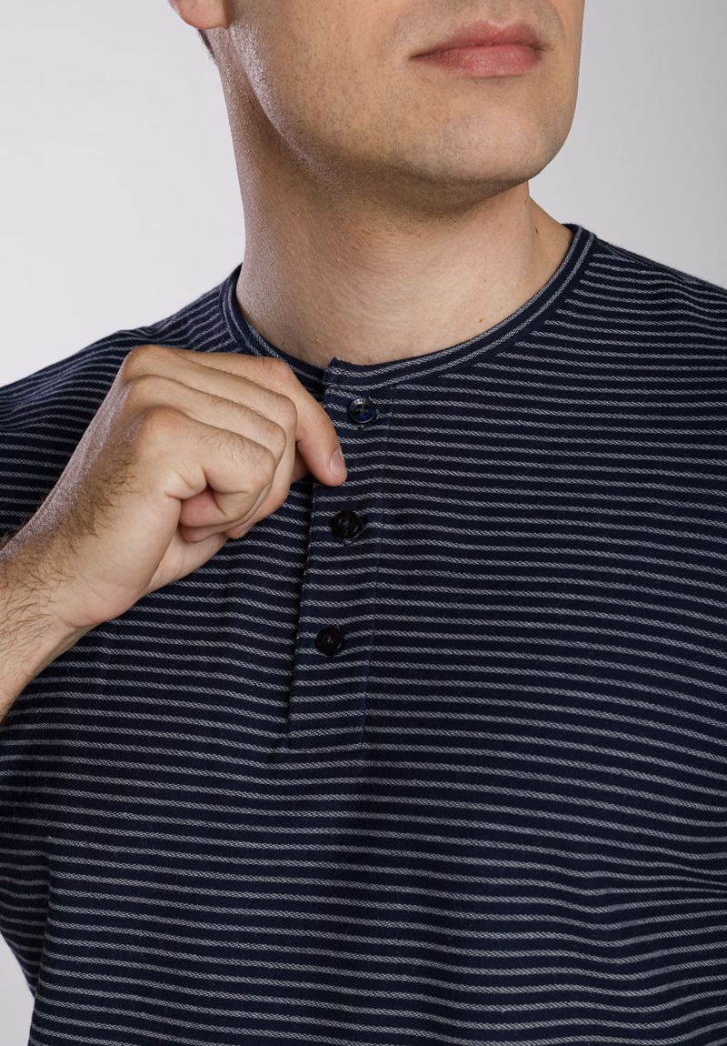 A Henley Mykonos combina o clássico da gola com botões à sofisticação do tecido texturizado em algodão. Com três botões frontais e modelagem ajustada, é uma peça que equilibra elegância e conforto de forma natural. O design contemporâneo e as listras sutis tornam a camiseta versátil — ideal tanto para composições casuais quanto para produções mais alinhadas.
