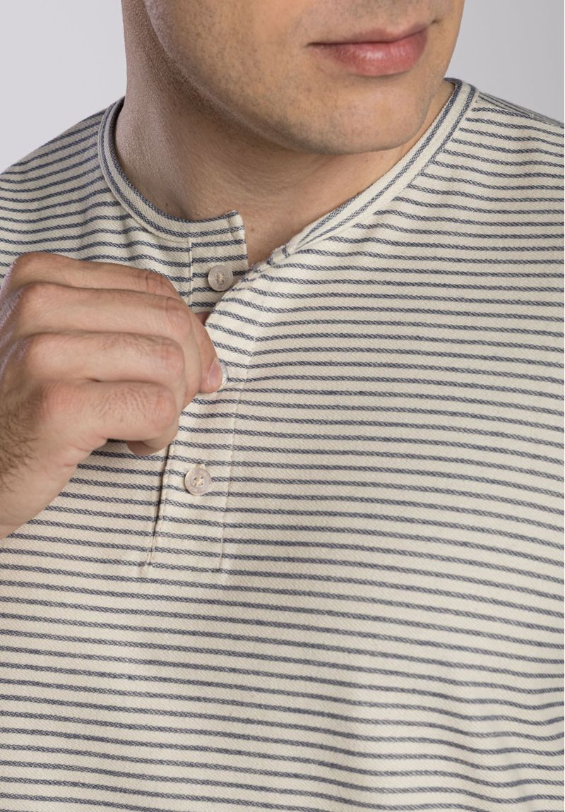A Henley Mykonos combina o clássico da gola com botões à sofisticação do tecido texturizado em algodão. Com três botões frontais e modelagem ajustada, é uma peça que equilibra elegância e conforto de forma natural. O design contemporâneo e as listras sutis tornam a camiseta versátil — ideal tanto para composições casuais quanto para produções mais alinhadas.